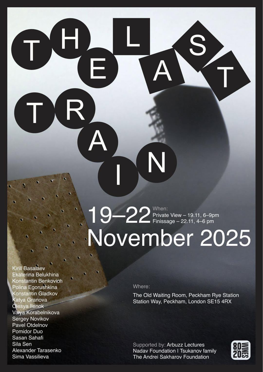 Vernissage on November 19th, 2025, at 6-9 PM at The Old Waiting Room, Peckham Rye Station in London, UK, November 19-22.